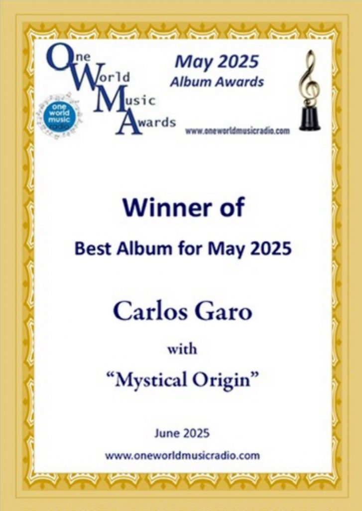 Mystical Origin también está teniendo una acogida muy especial fuera de mi país. Ser Álbum del Mes de mayo en Reino Unido, en One World Music Radio, es un reconocimiento que valoro enormemente, al igual que la difusión del disco en radios internacionales, llevando mi música a nuevas culturas y oyentes.